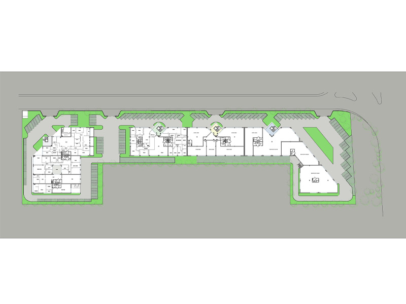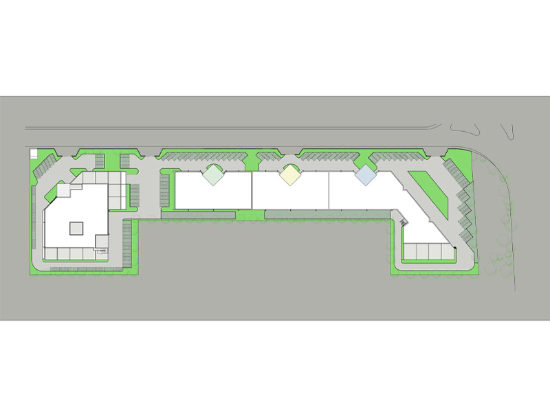 Il progetto si è posto l’obiettivo di “mettere in mostra” le attività, già conosciute in quanto operatori consorziati, limitando gli elementi opachi e proponendo una serialità di trasparenze e finestrature che consentono di distinguere le attività che si andranno ad insediare.