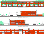 I paramenti esterni sono in mattoni a faccia vista per tutte le superfici, la copertura dell’insediamento è completamente piana, tutti gli infissi esterni sono uniformati per materiali e caratteristiche così come dello stesso colore saranno gli elementi oscurati esterni del piano primo.