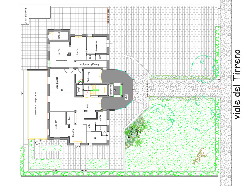 Gli esterni hanno visto la demolizione di corpi in superfetazione, la delimitazione di spazi parcheggio e la realizzazione degli spazi di incontro esterni e verdi a corredo.
