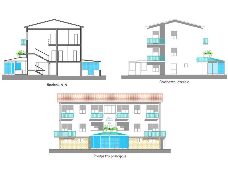 L’intervento ha comportato una totale ristrutturazione del piano terra con la reception in ampliamento, aumento della sala ristorante e living, il completo rifacimento della cucina mentre ai piani superiori sono stati ammodernati tutti gli impianti, ridistribuiti gli spazi con camere e bagni indipendenti e pertanto sono stati demoliti e ricostruiti oltre ai tramezzi anche tutte le opere di finitura.